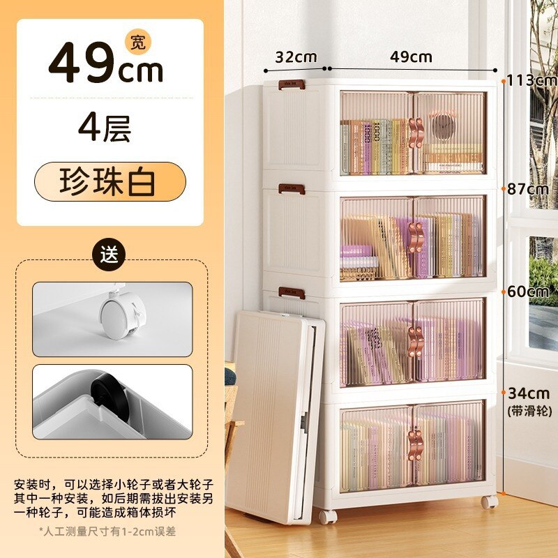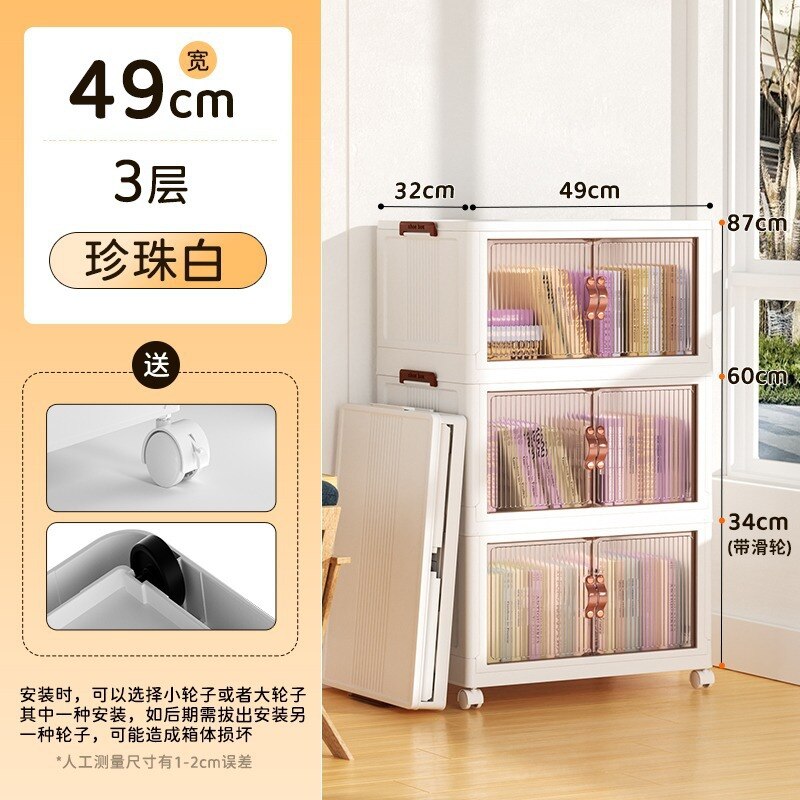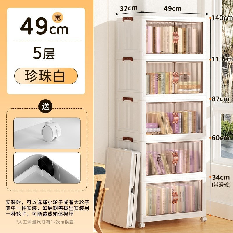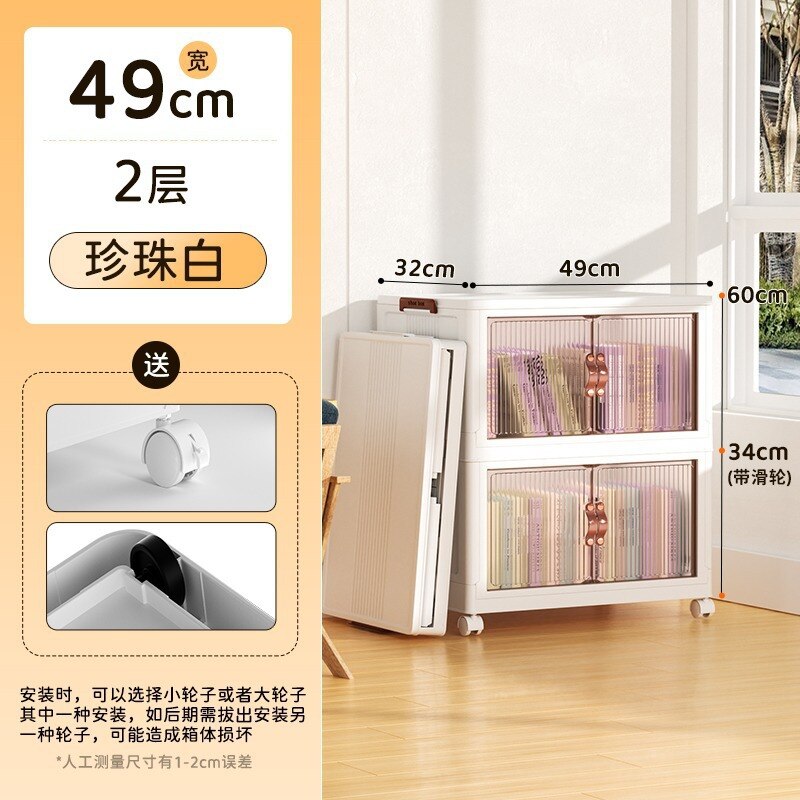 • Folding Portable Storage Cabinet Bins Stackable Organizer Box with Caster Wheels Collapsible Toy Storage with Double Door