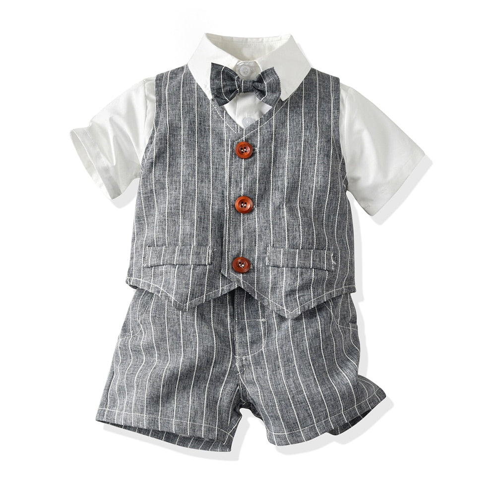 Top and Top Summer Fashion Newborn Boys Formal Clothing Set Cotton Romper Top+ Shorts Baby Gentleman Suit Kids Boys Clothes Sets