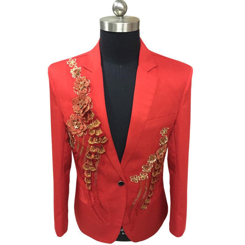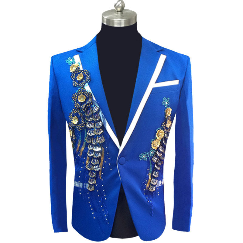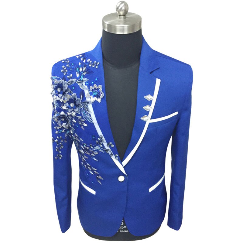 • Diamond Royal Blue Men Suit Set Gold Embroidered Wedding Mens Slim Fit Tuxedo Mens Suits with Pants Prom Show Stage Costume Male