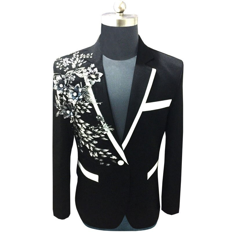 • Fashion Men Spliced Suits Black / White Singer Host Stage Performance Luxurious Dress Blazers Jacket and Pants