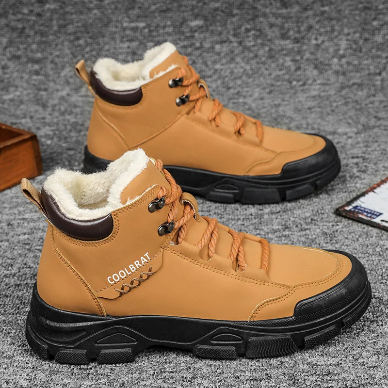 Men Boots Winter High Top Leather Shoes Fashion Cotton Shoes Fashion Ankle Boots Casual Outdoor Shoes Male Sneakers New