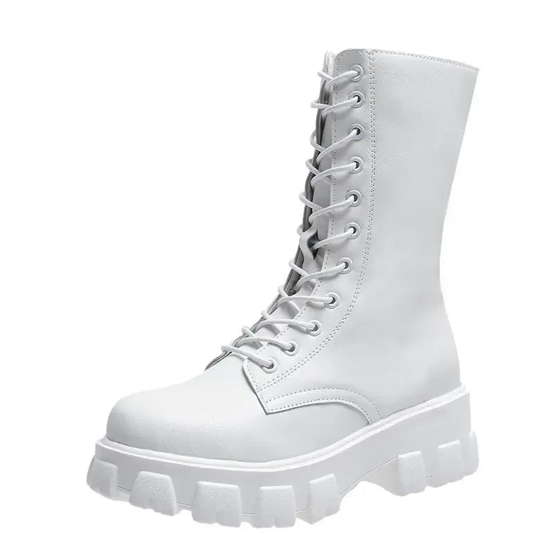2024 Winter Shoes Women White Boots Autumn Fashion PU Leather Platform Gothic Boots Punk Combat Mid-Calf Boots For Women Booties