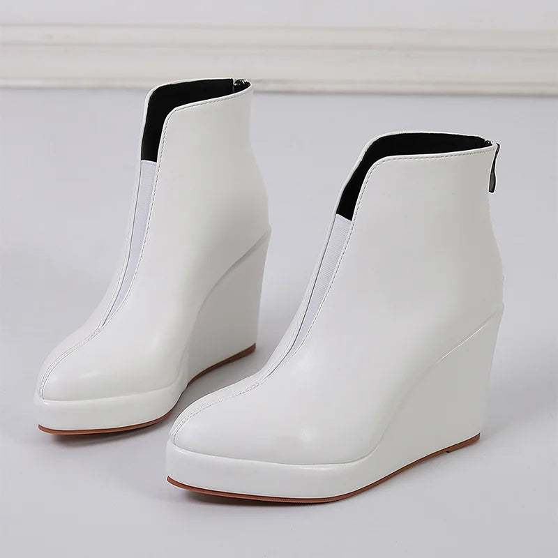 New Autumn Early Winter Shoes Women Ankle Boots Platform Fashion Ladies Wedge Heels 10cm Pure Black White Big Size 42