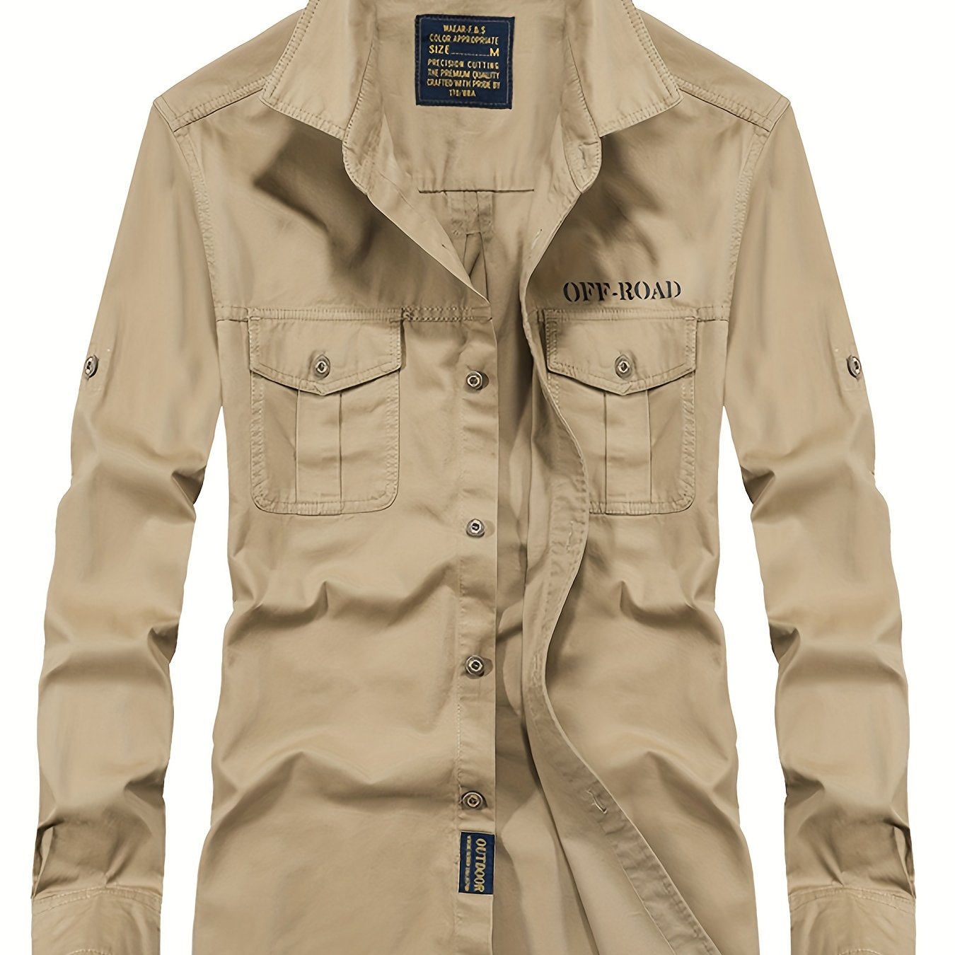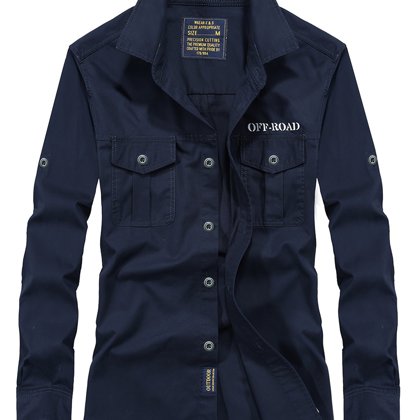 Men's Military Style Long Sleeve Solid Color Oversize Shirt, Casual Trendy Comfy Coat For Autumn And Winter Outdoor Activities