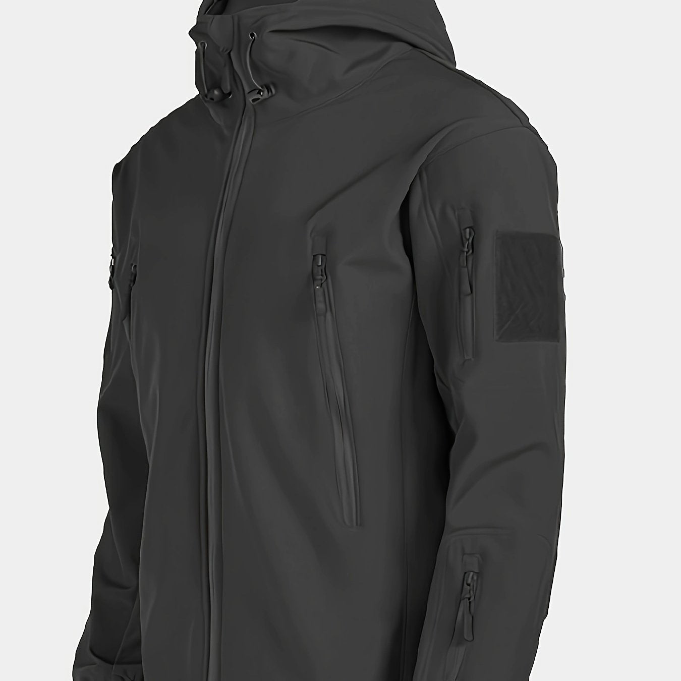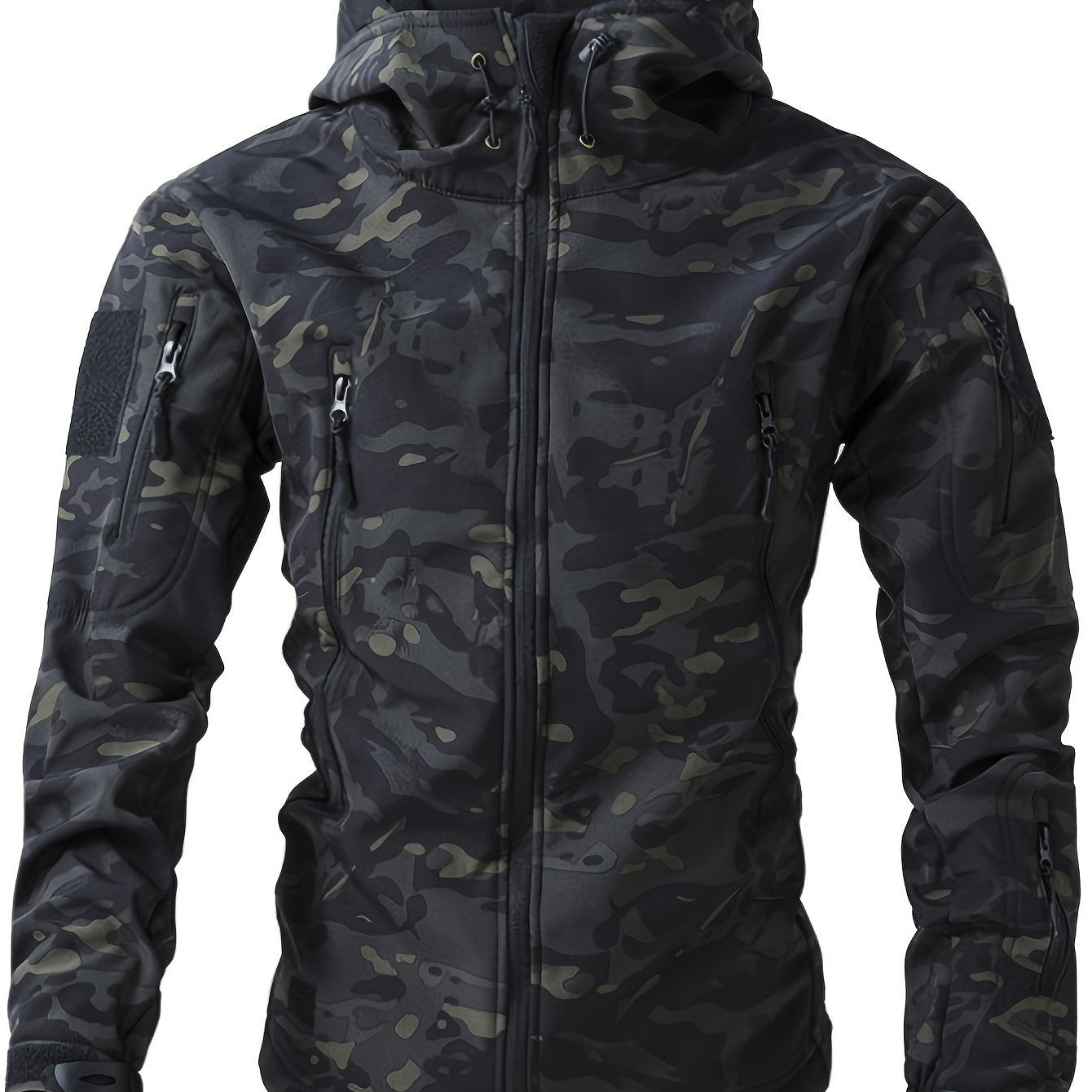 Warm Fleece Hooded Windbreaker Jacket, Men's Casual Zip Up Jacket Coat For Fall Winter Outdoor Hiking Camping Cycling