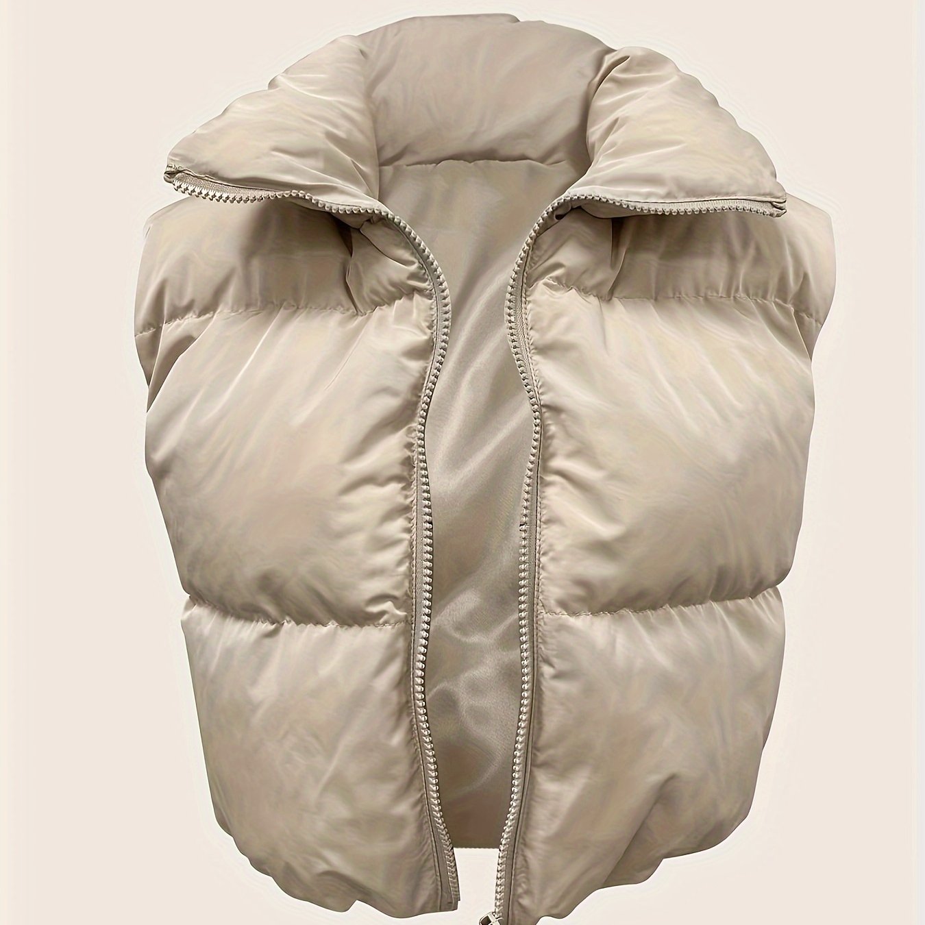 Stylish High Neck Sleeveless Vest Coat - Zip-Up, Casual, Solid Color, Women's Outerwear - Perfect for Daily Wear, Travel, and Outdoor Activities