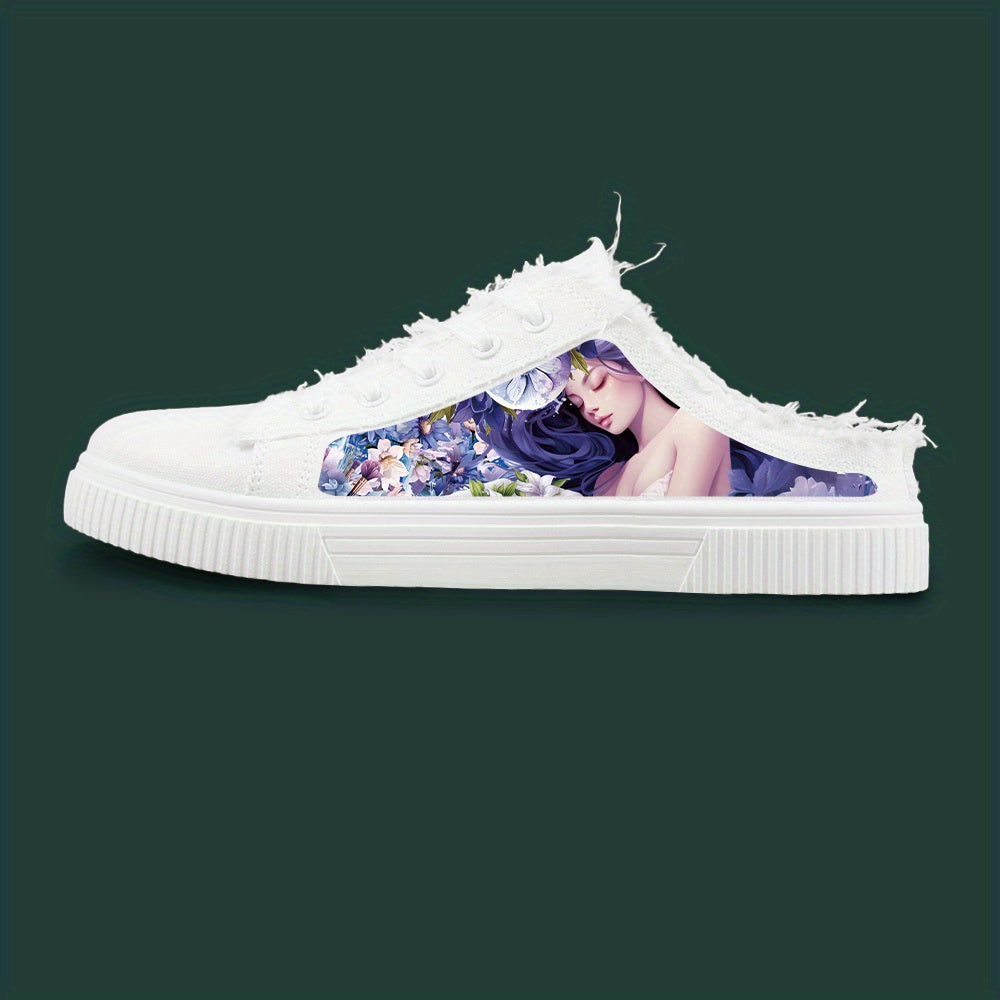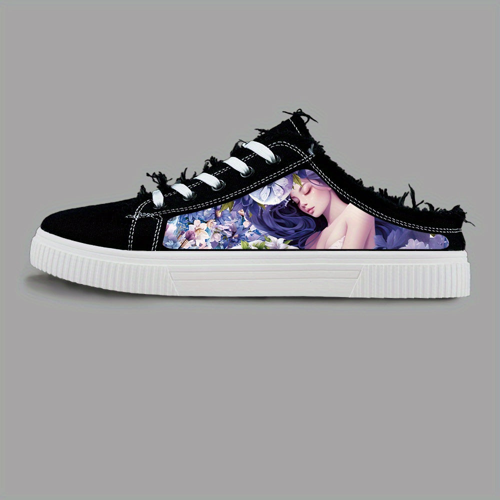Anime Pattern Men's Low Top Mule Shoes, Comfy Non Slip Lace Up Rubber Sole Canvas Sneakers, Men's Footwear