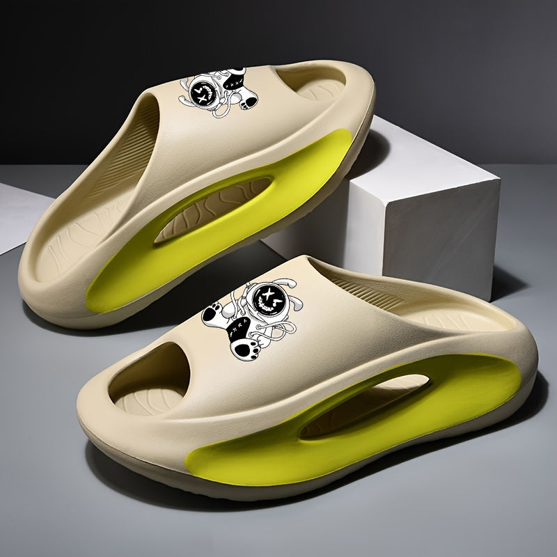 Plus Size Men's Vintage Astronaut Pattern Color Block Open Toe Breathable Chunky Slippers, Comfy Non Slip Durable Anti Odor EVA Slides, Men's Footwear