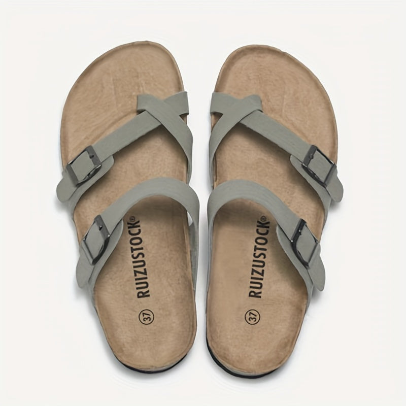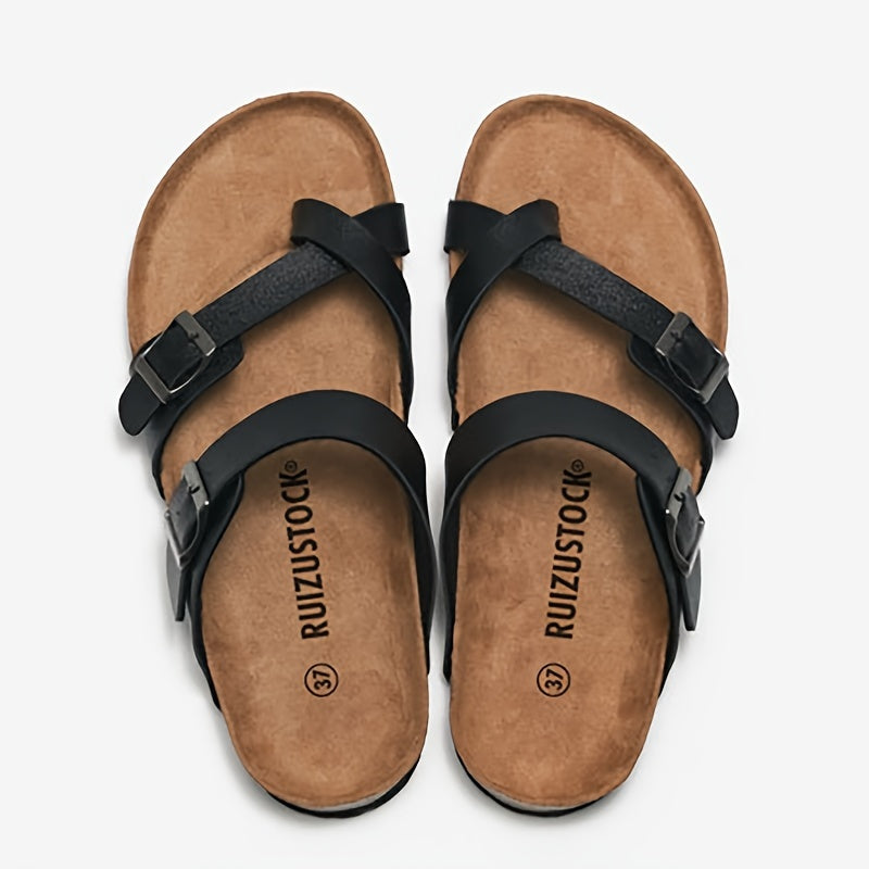 Men's Vintage Open Toe Breathable Slippers With Buckle Straps, Comfy Non Slip Durable Rubber Sole Walking Shoes, Men's Footwear