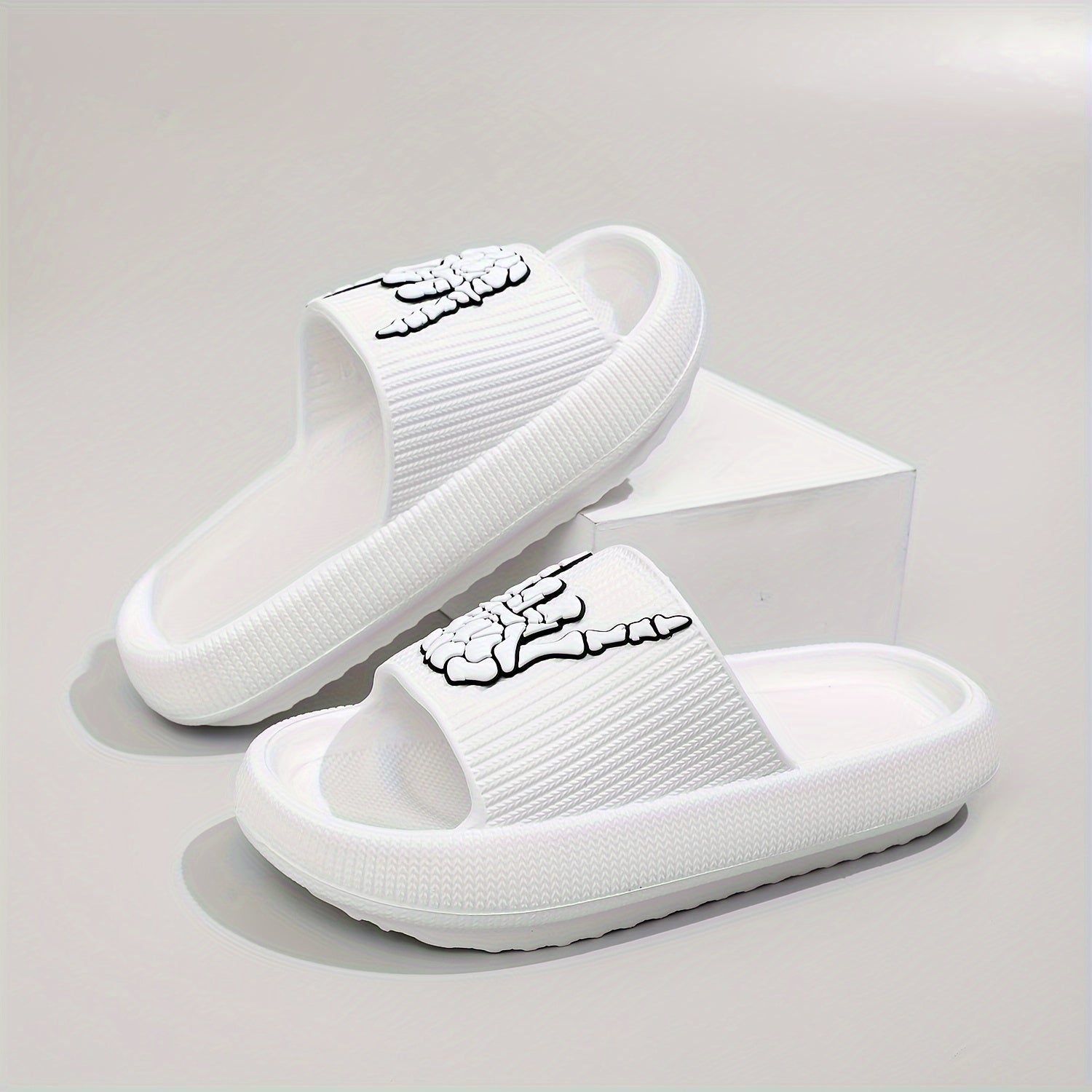 Men's Trendy Rock & Roll Gesture Pattern Open Toe Breathable Chunky Slippers, Comfy Non Slip Anti Odor EVA Slides, Men's Footwear