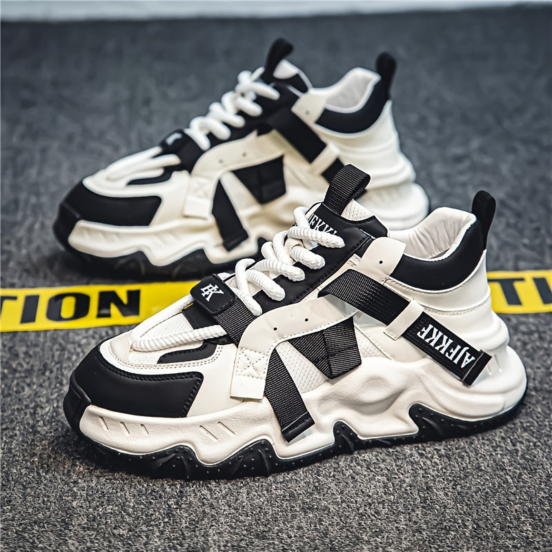 Men's Vintage Color Block Chunky Shoes, Comfy Non Slip Durable & Breathable Soft Sole Walking Shoes, Men's Footwear