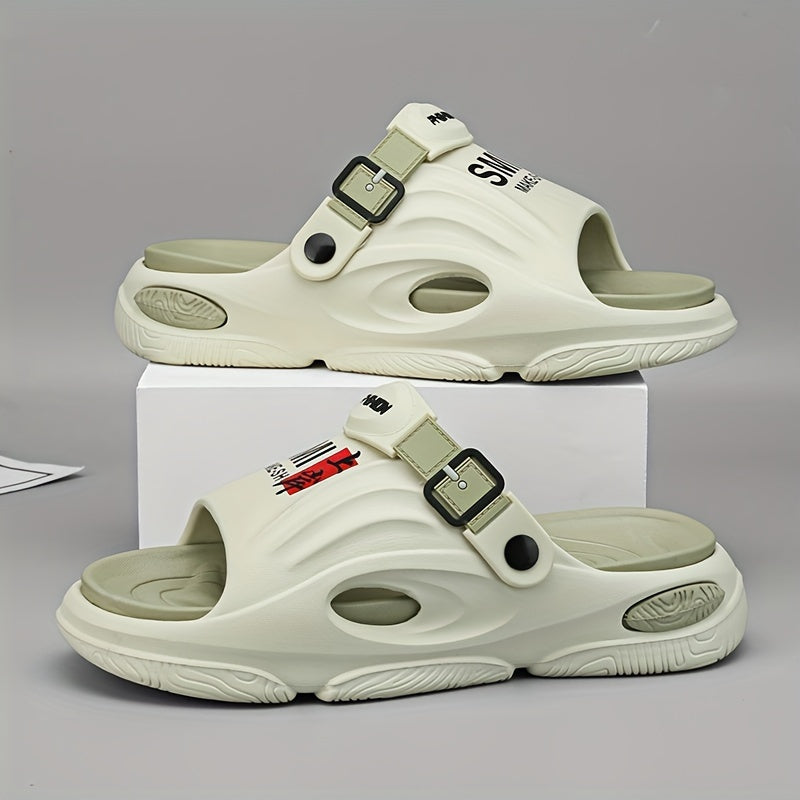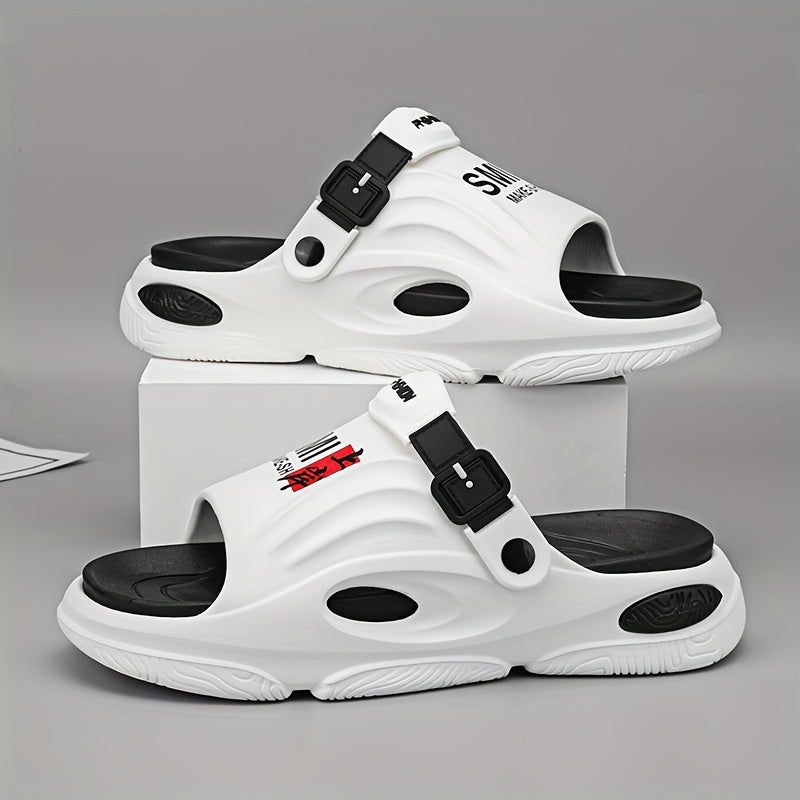 Men's Trendy Street Style Open Toe Breathable Chunky Slippers, Comfy Non Slip Durable Soft Sole EVA Slides, Men's Footwear