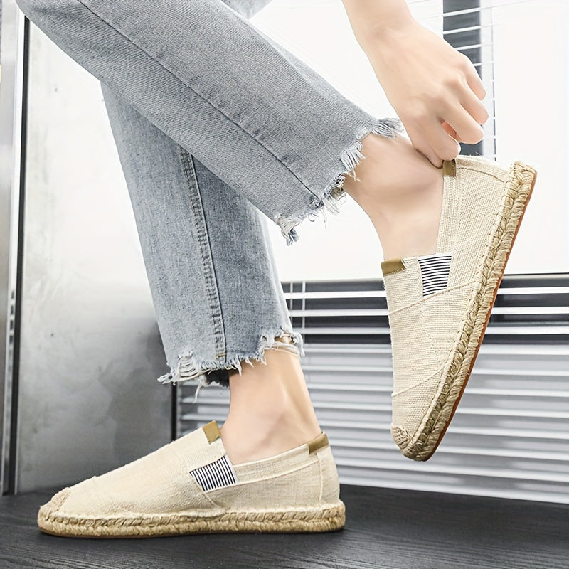 Men's Solid Color Breathable Slip On Canvas Shoes, Comfy Non Slip EVA Sole Durable Walking Shoes, Men's Footwear
