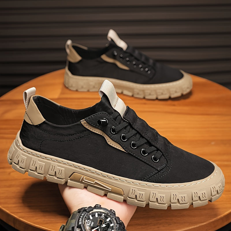 Men's Solid Color Vintage Low Top Skateboard Shoes, Comfy Non Slip Casual Durable Rubber Sole Walking Shoes, Men's Footwear