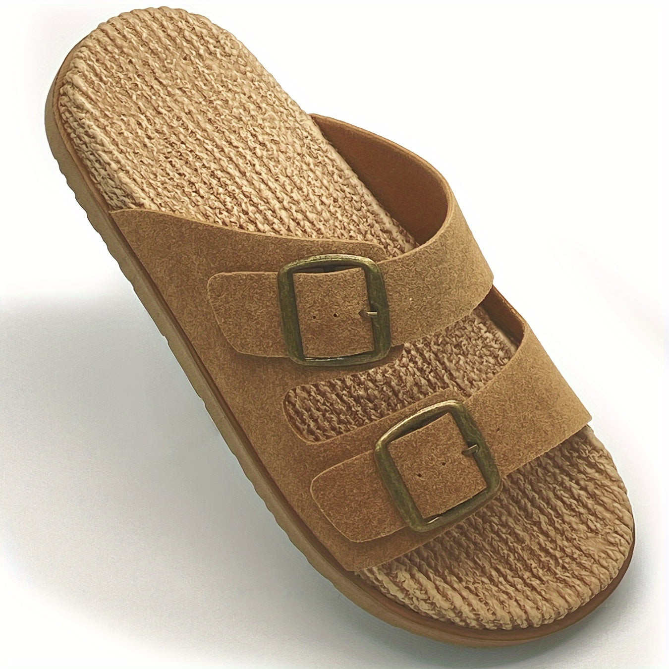Men's Solid Colour Open Toe Breathable Slippers With Buckle Straps, Comfy Non Slip Casual Durable EVA Sole Slides, Men's Footwear