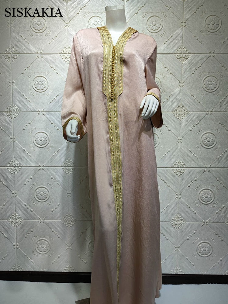 Siskakia Dubai Arabic Muslim Abaya Dress for Women Fall 2020 Champagne Moroccan Kaftan Hooded Robe Turkish Islamic Jalabiya