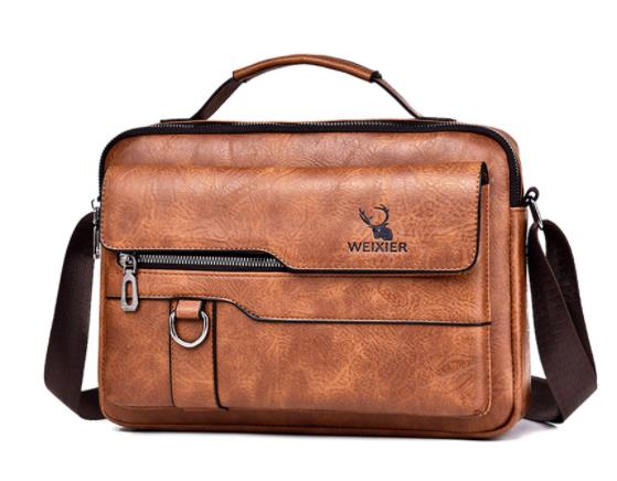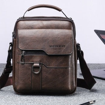 New Men's Messenger Bag Brand designer PU Leather Retro Large-capacity Shoulder Bag