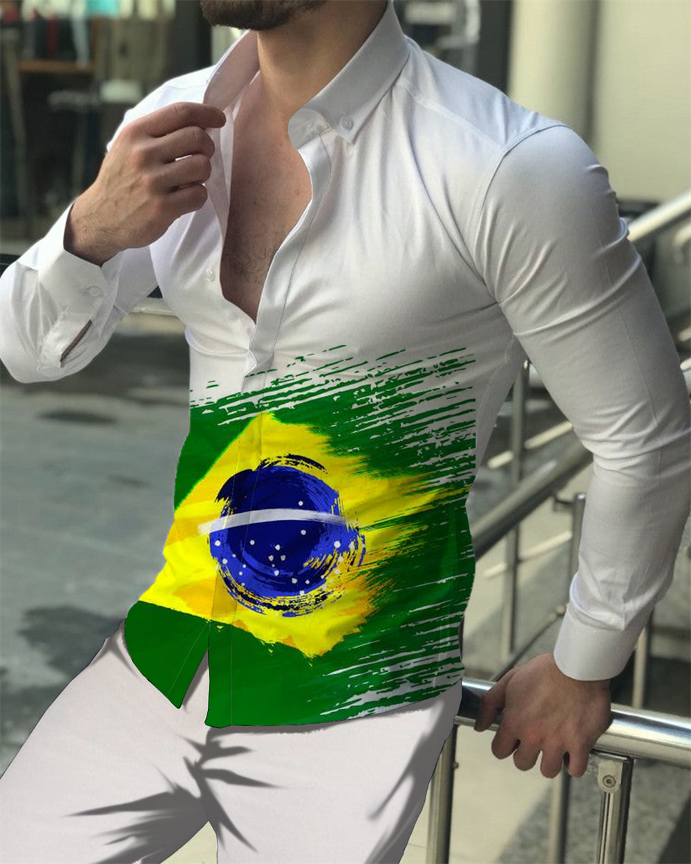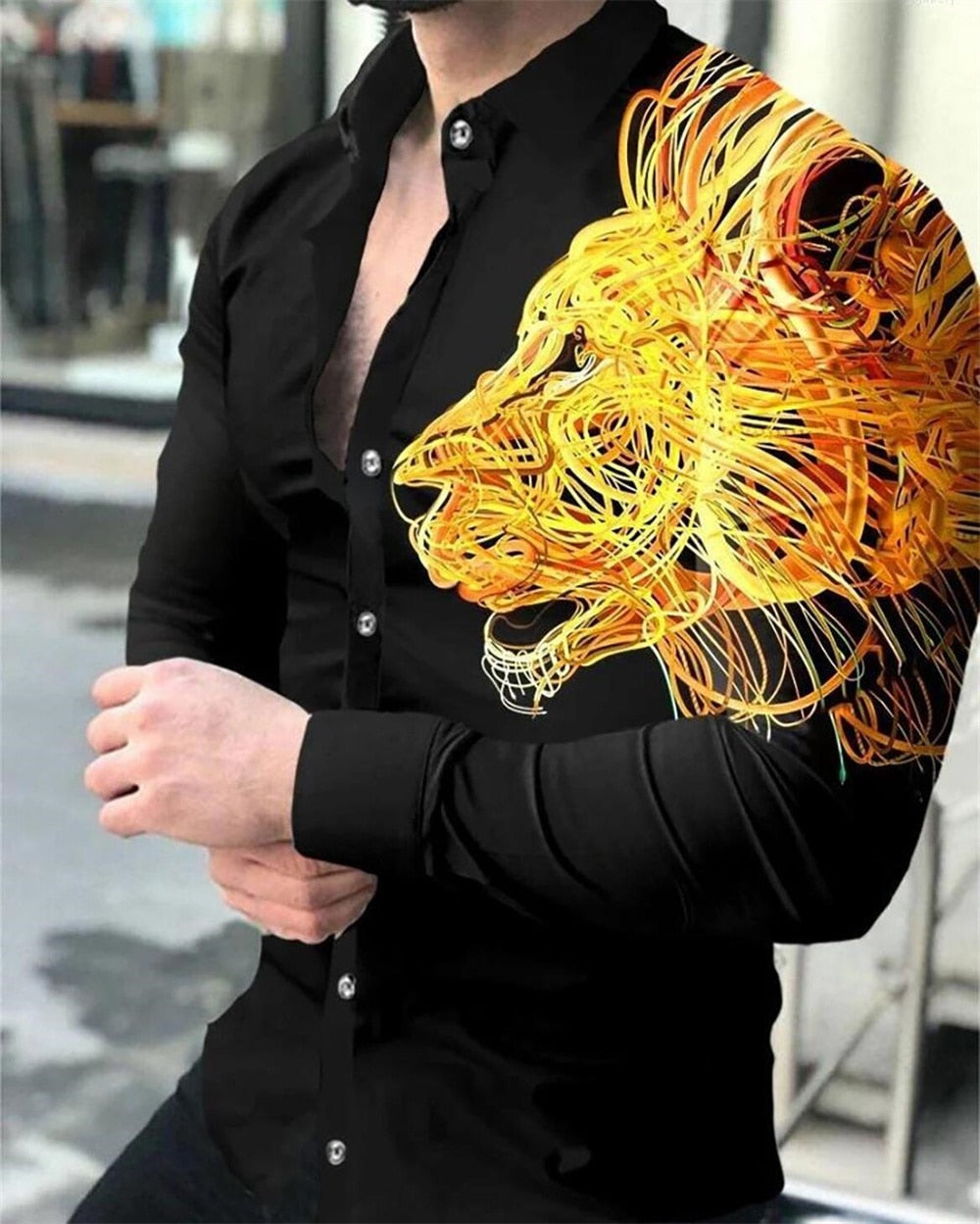 New parties fashion social men's buttons Shirt casual designer prints long -sleeved top men's lapel men's clothing 2023