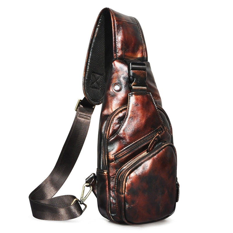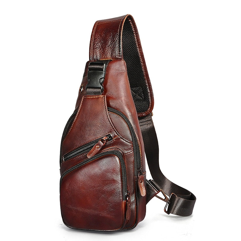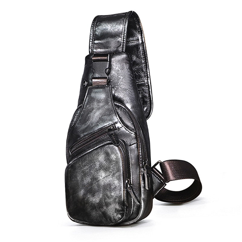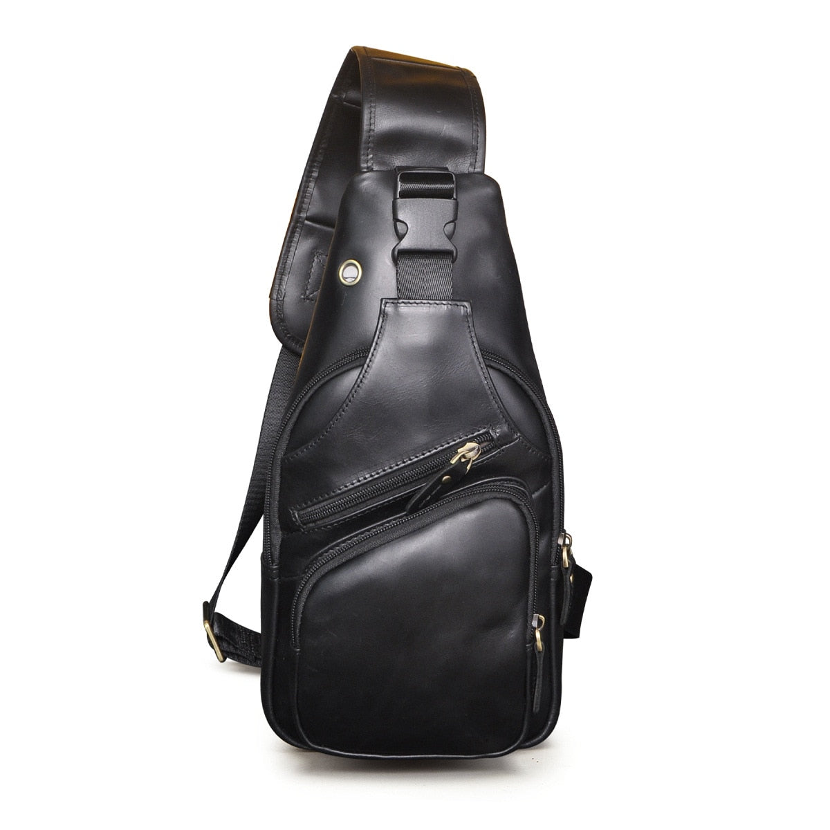 Men Original Crazy horse Leather Casual Triangle Crossbody Chest Sling Bag Design Travel One Shoulder Bag Daypack Male 8015