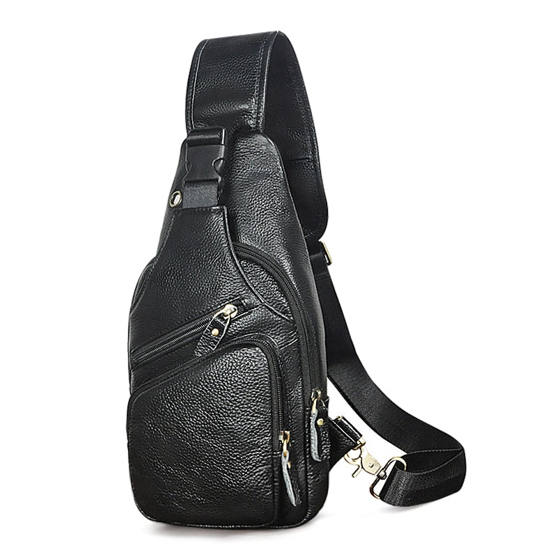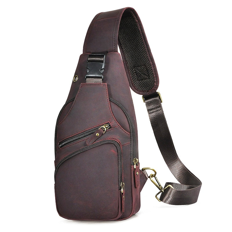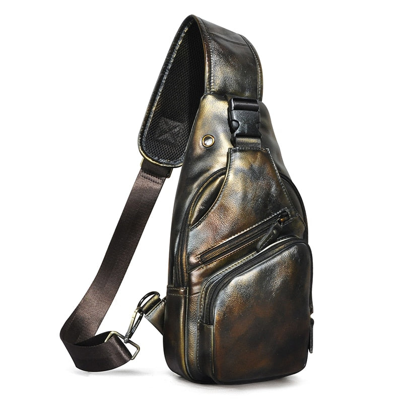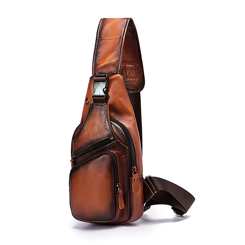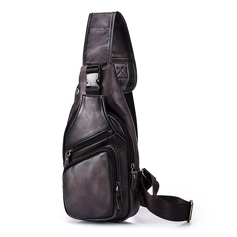 Men Original Crazy horse Leather Casual Triangle Crossbody Chest Sling Bag Design Travel One Shoulder Bag Daypack Male 8015