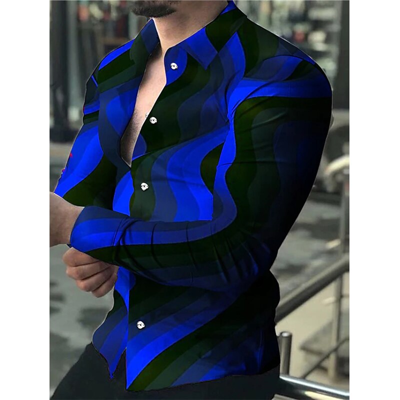 • Luxury Long Sleeve Mens Baroque Shirts Dress Autumn Party Prom Wear Slim Fit Male Brand Clothing Striped Print Casual Shirt Men