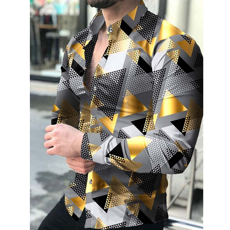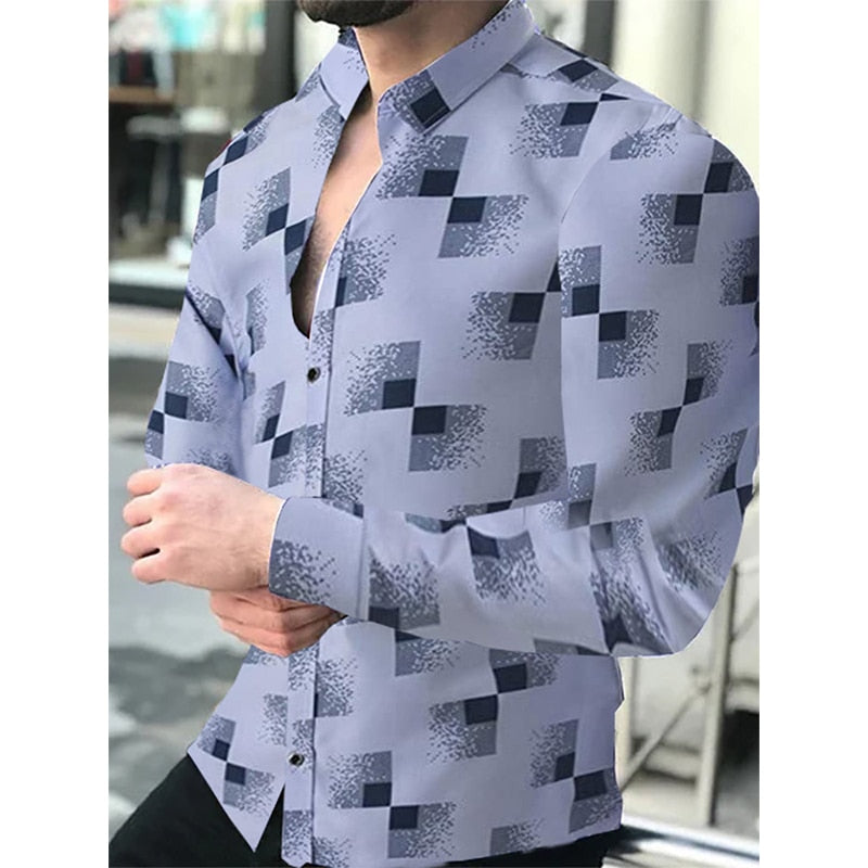• Luxury Social Men Shirts Turn-down Collar Buttoned Shirt Casual Lattice Print Long Sleeve Tops Men's Clothes Club Prom Cardigan