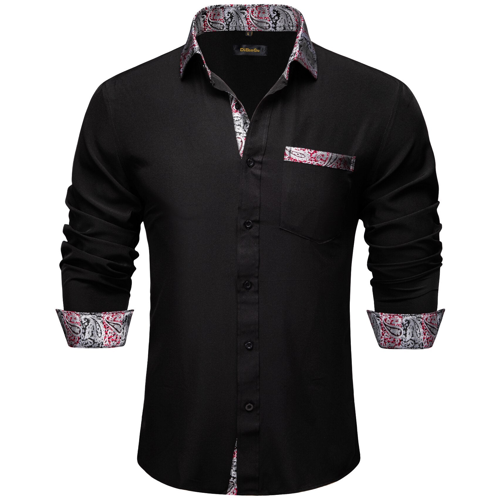 • Luxury White Red Dress Shirts for Men Clothing Long Sleeve Tuxedo Social Casual Splicing Paisley Collar Cuff Mens Shirt