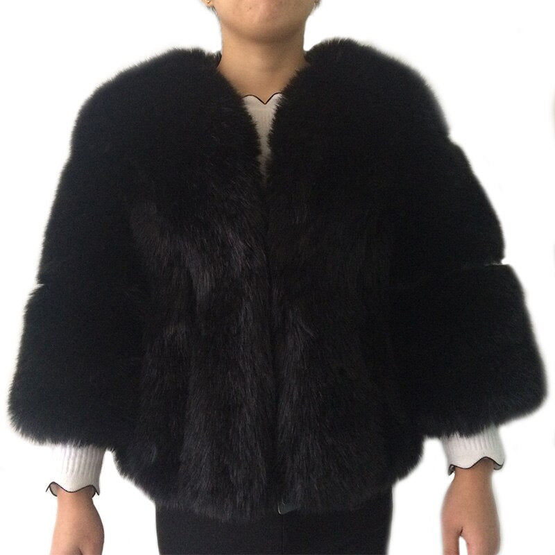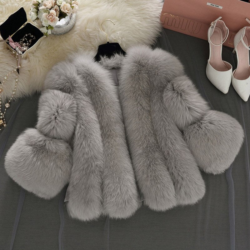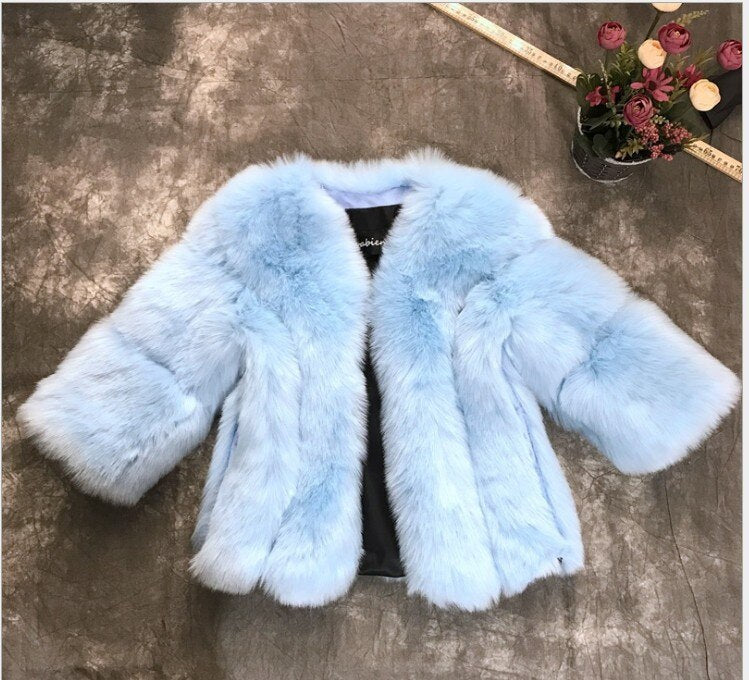 HJQJLJLS 2021 Winter Women Thick Warm Pink Fur Coat Fashion Faux Fox Fur Coat Female Three Quarter Sleeve Artificial Fur Jacket
