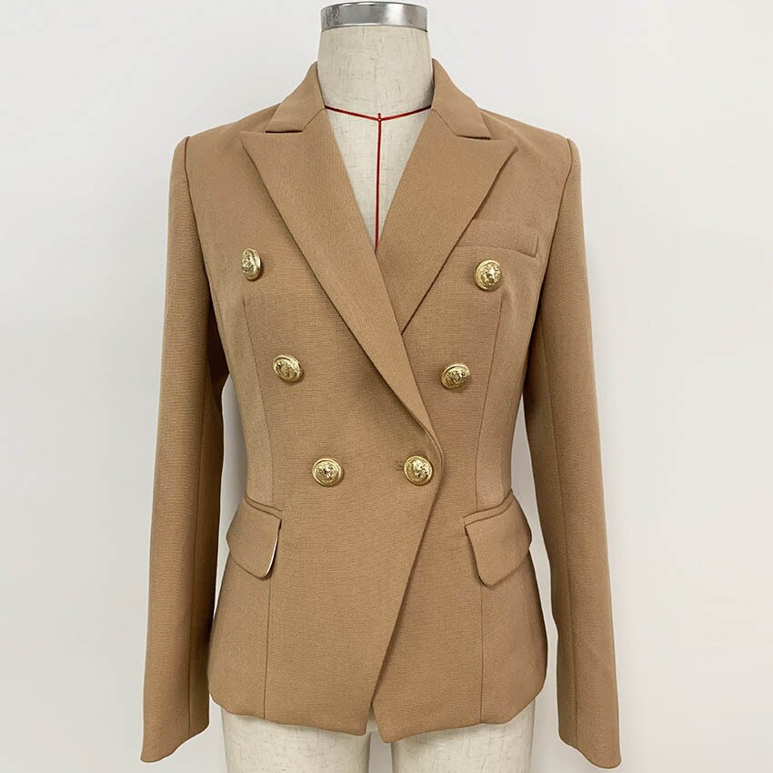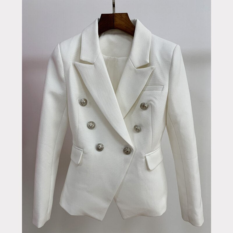 HIGH STREET 2023 Classic Designer Blazer Women's Double Breasted Metal Lion Silver Buttons Pique Blazer Jacket