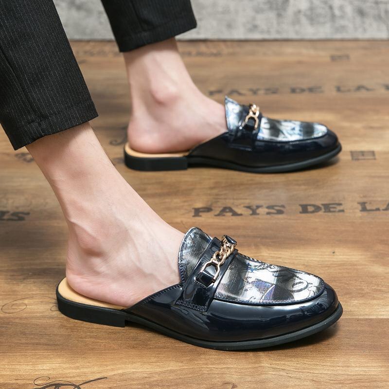 Fashion Half Shoes for Men Slippers Genuine Leather Loafers Shoes Man Moccasins Comfort Non-slip Male Driving Casual Shoes