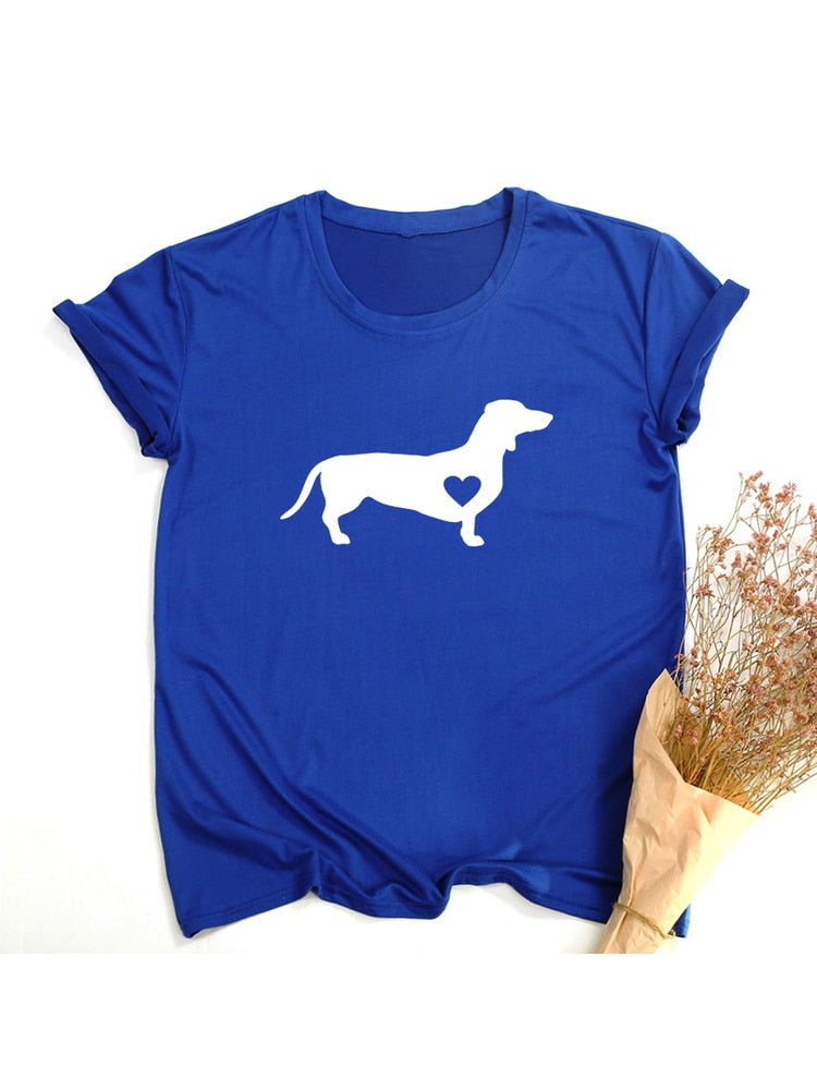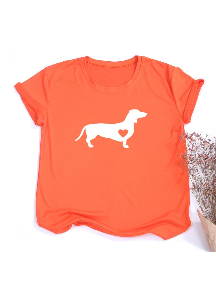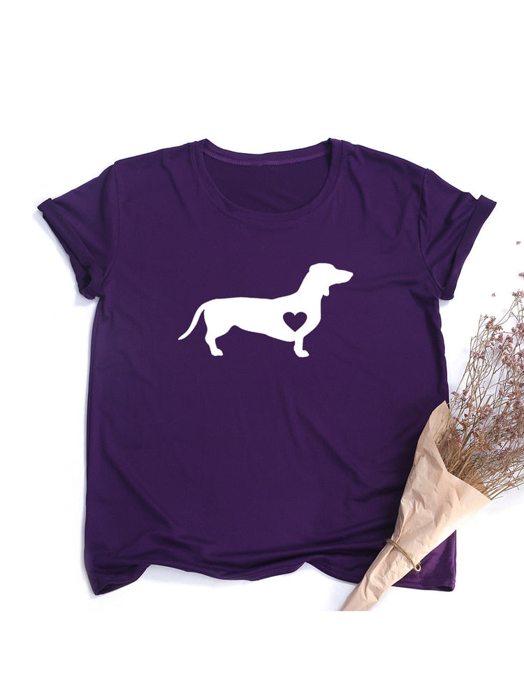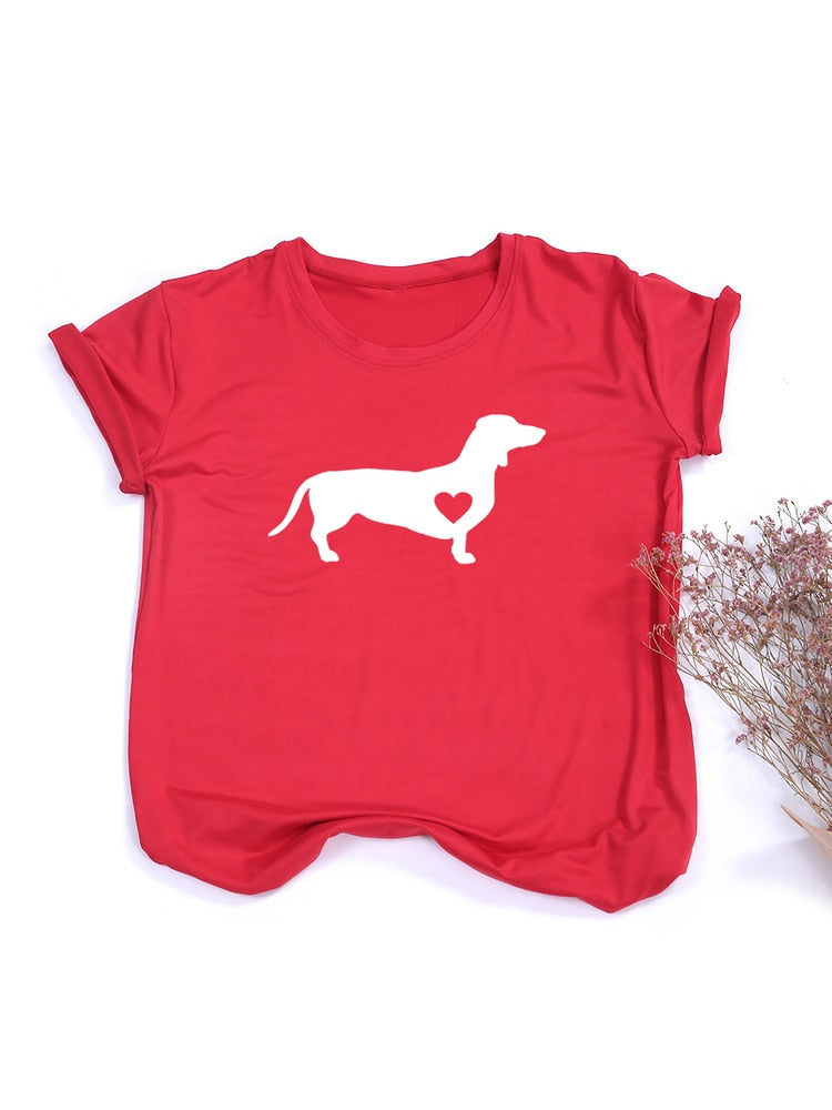 Dachshund Dog Print Women T-Shirt Dog Mom Life Streetwear Tumblr Female Causal Graphic Tees Harajuku Tops Aesthetic Camisetas