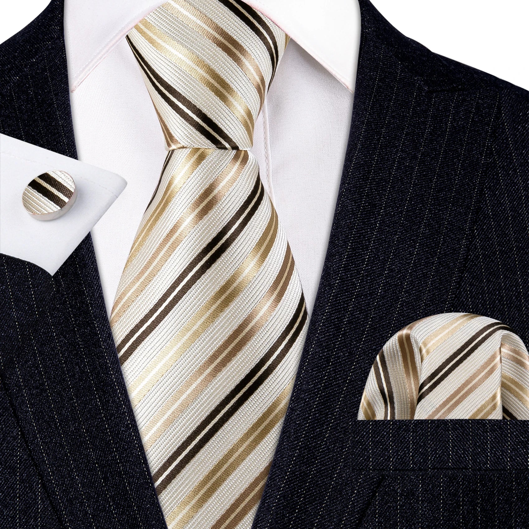 • Barry.Wang Gold Silk Mens Tie Hanky Cufflinks Set Yellow Beige Orange Luxury Jacquard Necktie For Male Wedding Business Party