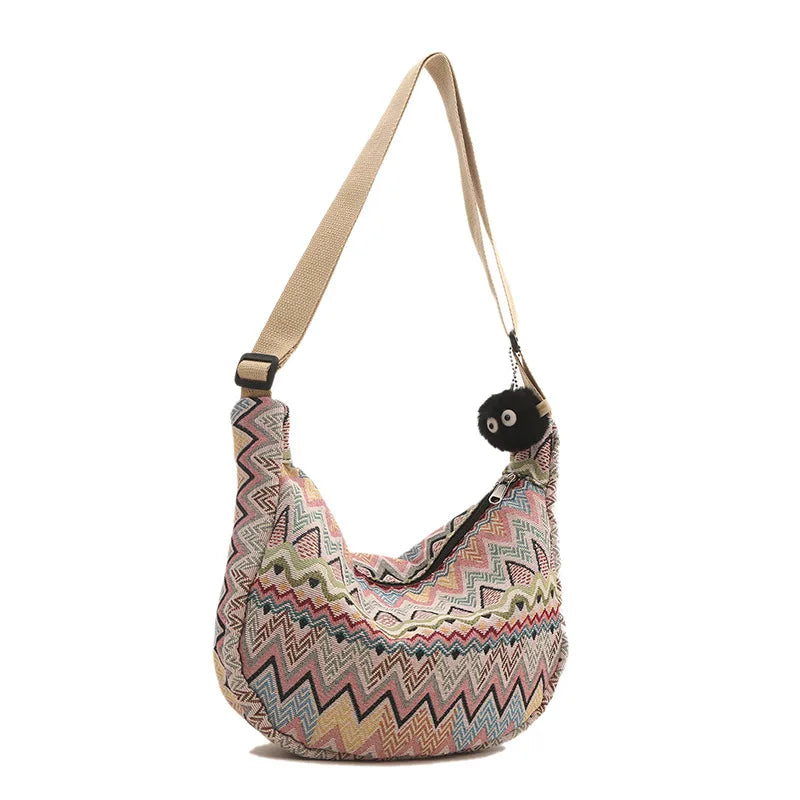 Wave Pattern Design Crossbody Bag for Women New Large Capacity Canvas Shoulder Bag, Versatile College Students Dumplings Bag
