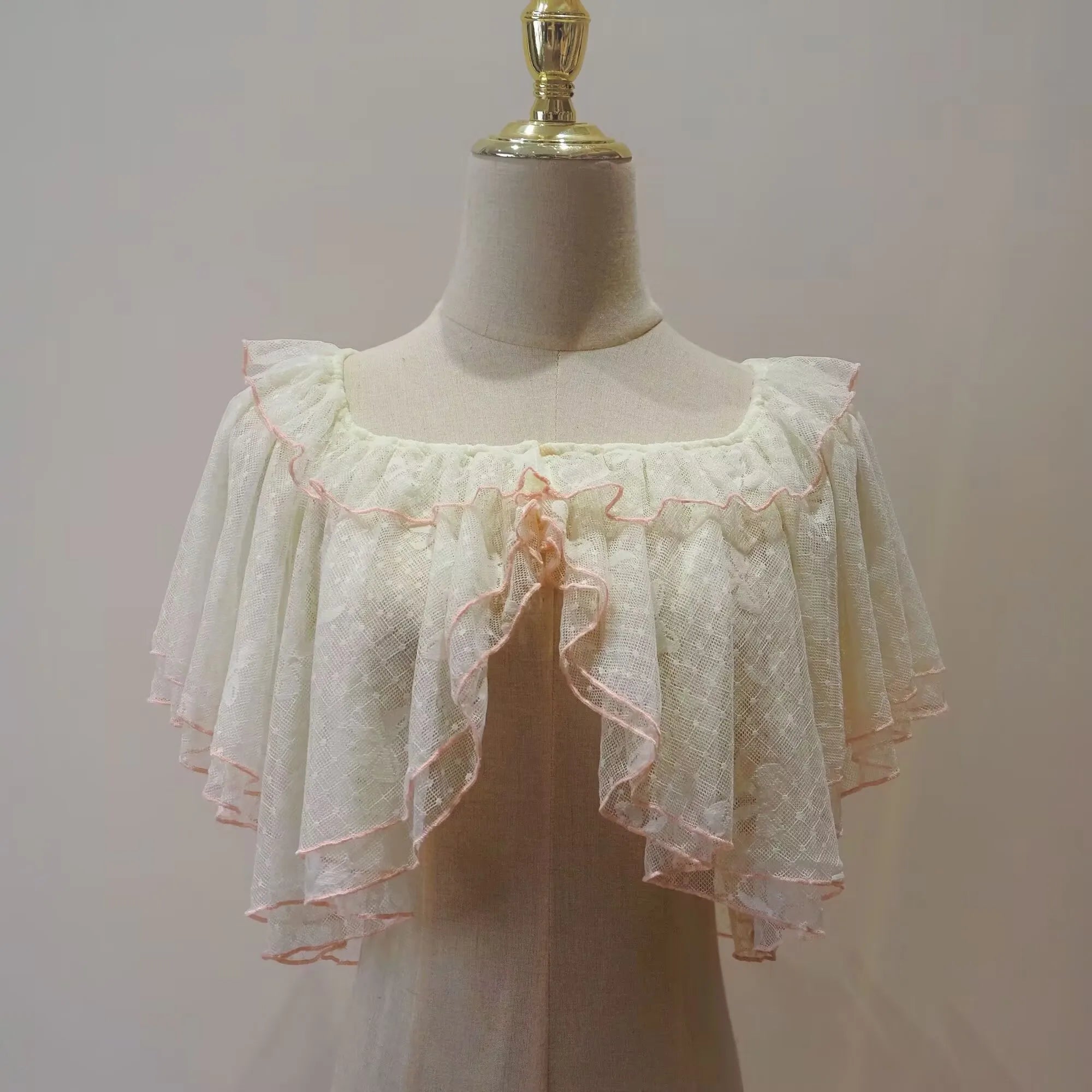 Summer Lolita Short Wraps Coat Women Sweet Kawaii Lace Mesh Open Front Poncho Gothic Girls Retro Cute Princess Capes Wraps