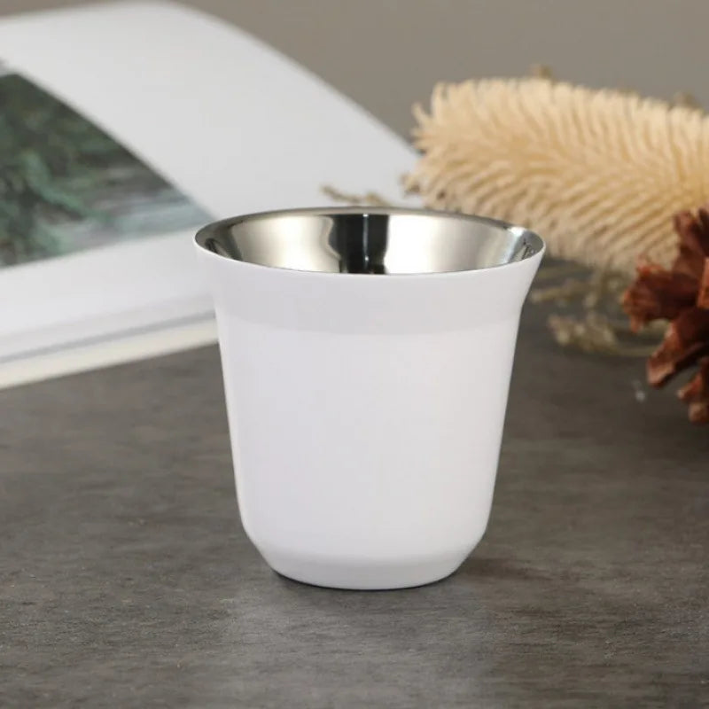 Double Wall Insulated Stainless Steel Espresso Cup Capsule Coffee Mug Metal Drinking Demitasse Cup For Home Indoor or Outdoor