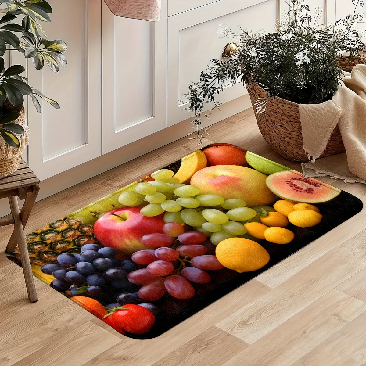 1pc/2pcs, Fruits Kitchen Mats, 0.47inch Thickness Non-Slip And Durable Bathroom Pads, Comfortable Standing Runner Rugs, Carpets For Kitchen, Home, Office, Sink, Laundry Room, Bathroom, Spring Decor