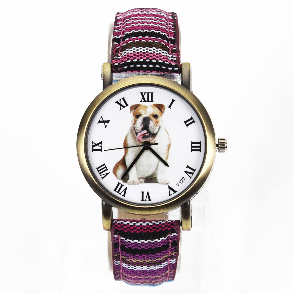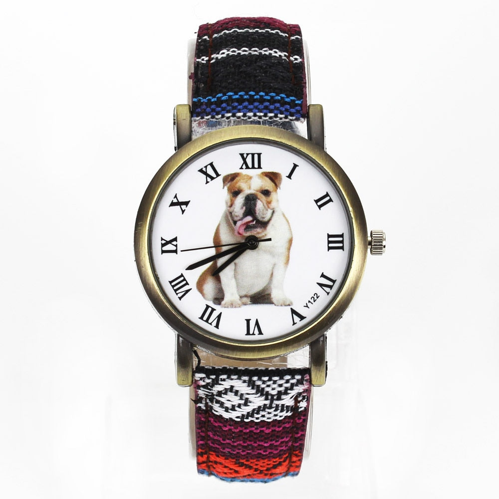 Bulldog Large Pet Dog Watch Women Men Military Camouflage Denim Canvas Belt For English French Dogs Sport Quartz Wrist Watch