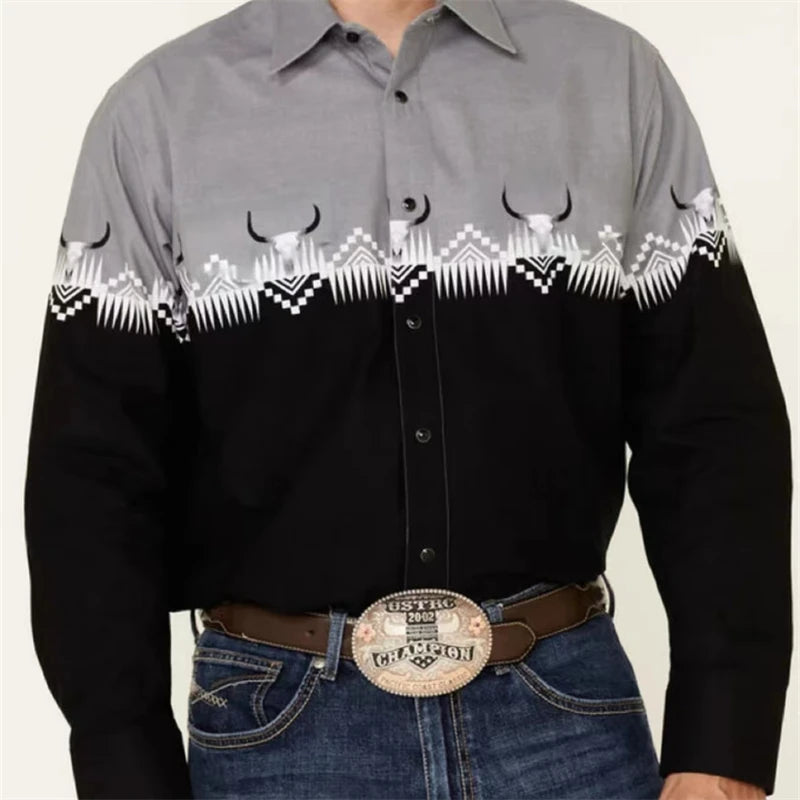 Men's Buttoned Shirt Spring Summer Long Sleeve Mexican Western Denim Comfortable Outdoor Farm Work Fit Easy Clean Large Size 6XL