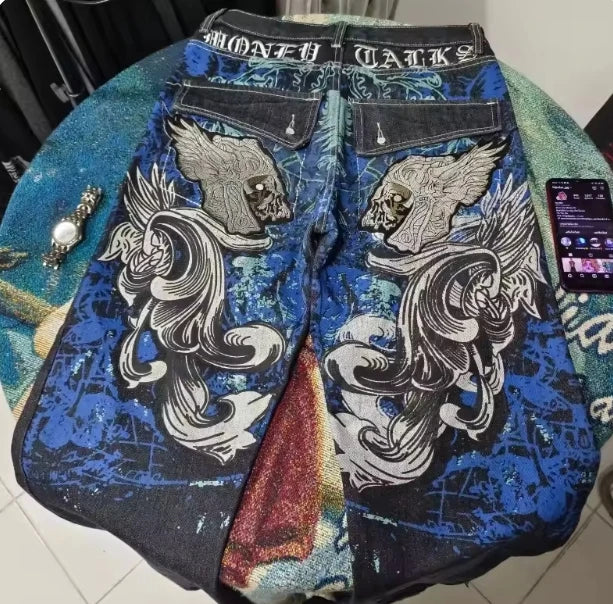 2025 Jacquard Full Print High Street Trendy Brand Ins Design Sense Jeans Loose Straight Tube Washed Wide Leg Long Pants