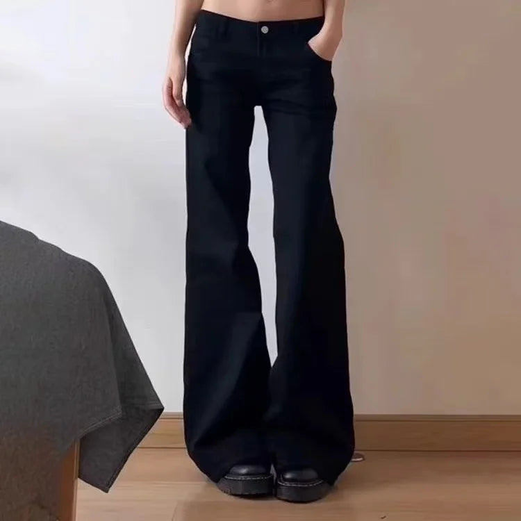 High Quality Women Wide Leg Baggy Jeans Lady Vintage Y2K Punk Low Rise Waist Loose Denim Pants Streetwear Trashy Long Trousers