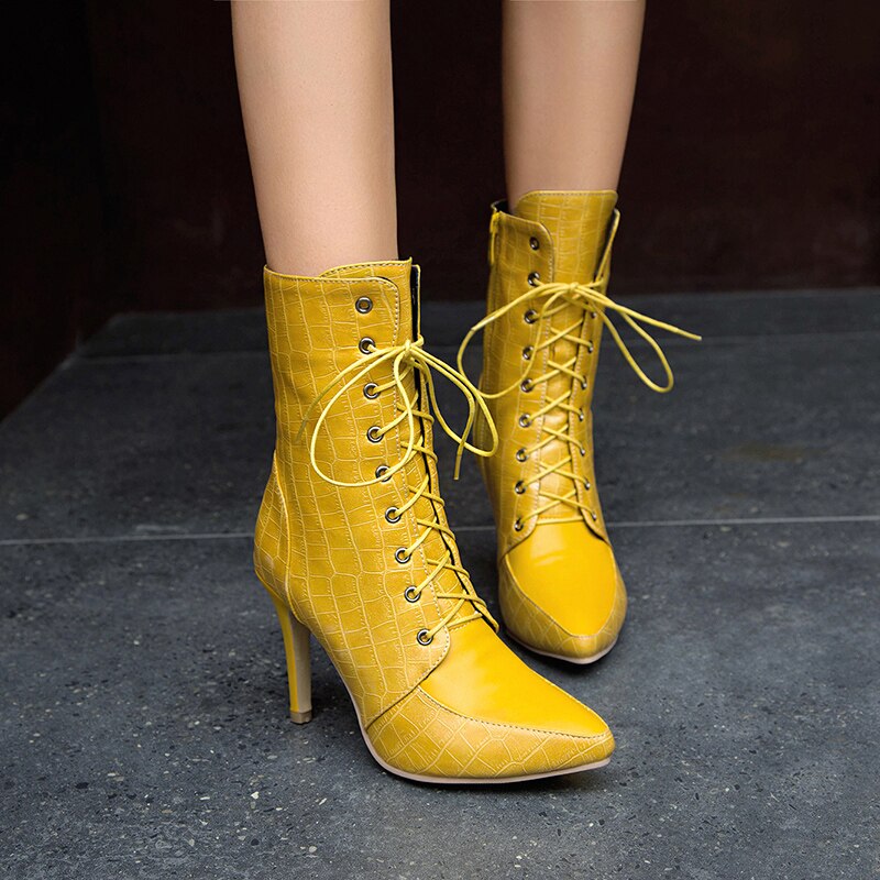 Women Ankle Boots Sexy Thin High Heel Winter Shoes Woman Fashion Zipper Warm Short Boot Office Footwear Size 34-43