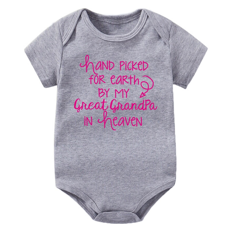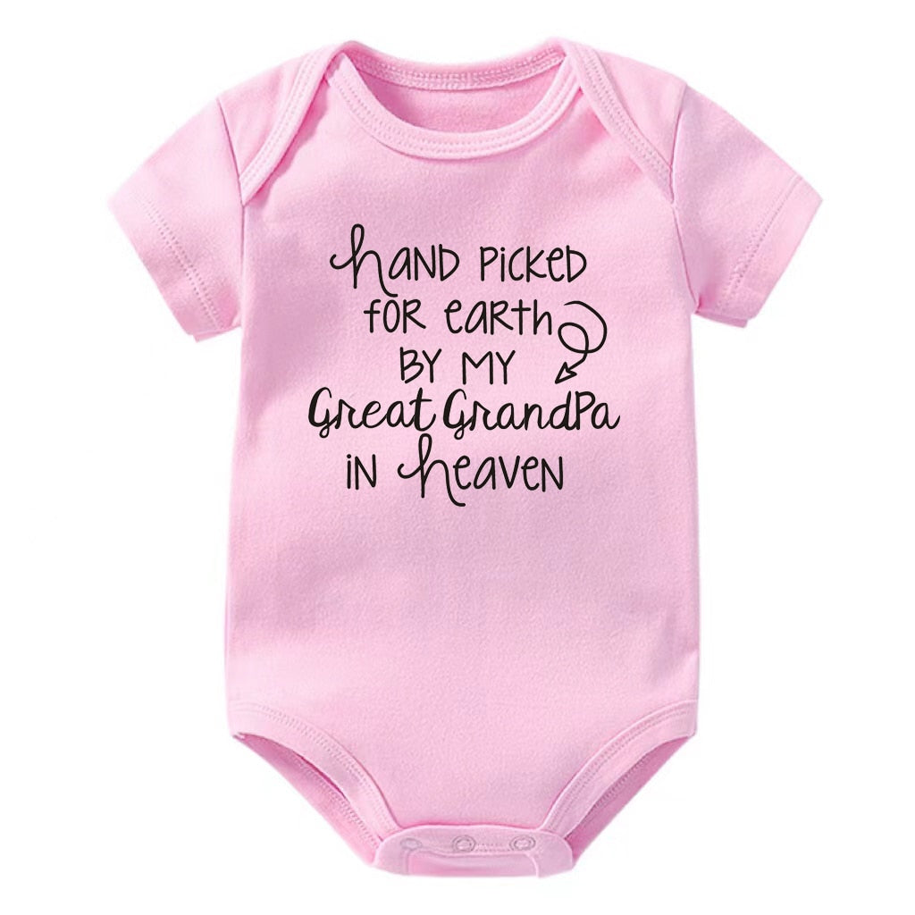 Hand Picked For Earth By My Great Grandpa In Heaven Printed Newborn Baby Bodysuit Cotton Body Baby Girl Boy Romper Clothes