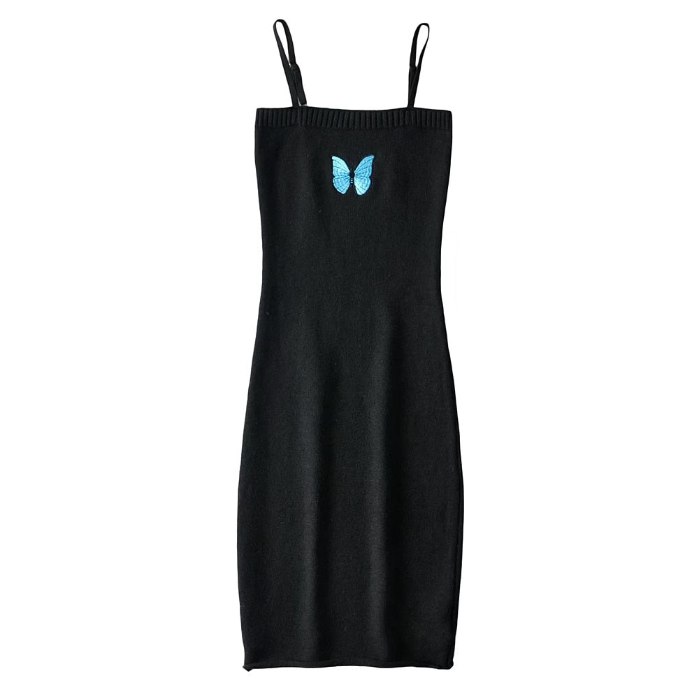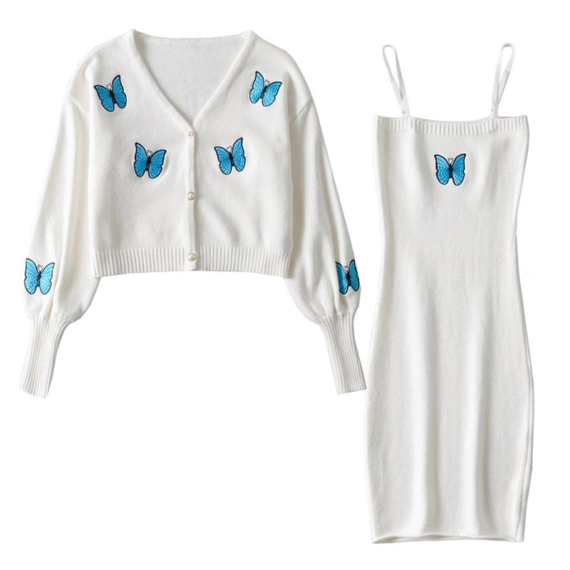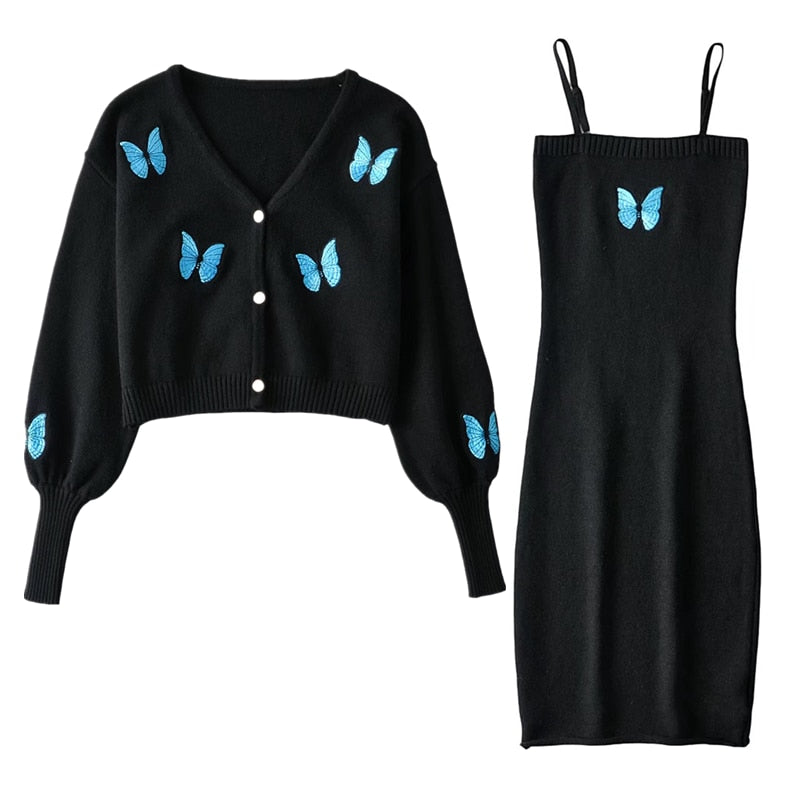 Sexy Butterfly Cardigan Korea style Long sleeve Sweater Slash Collar hips Dress 1 Set