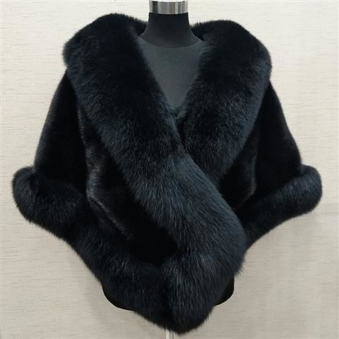 Women Sexy Fur Shoulder Wrap Bridal Shawls Winter Cape Female Jacket White Black Faux Fur Coat