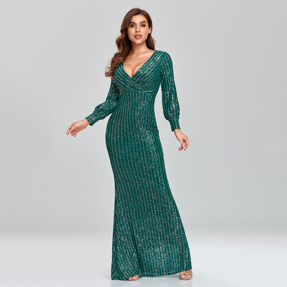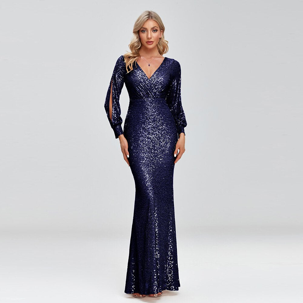 2023 Sexy New Women Elegant V-neck Mermaid Evening Dress Floor Length Formal Prom Party Gown