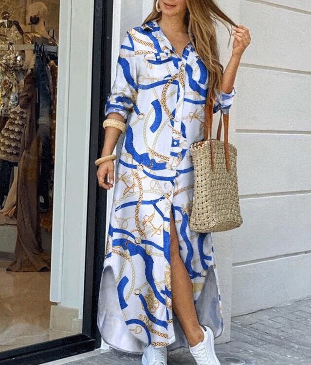 Sexy Long Dress Long Sleeve Shirt Women's Denim Long Dress Pocket Button Shirt