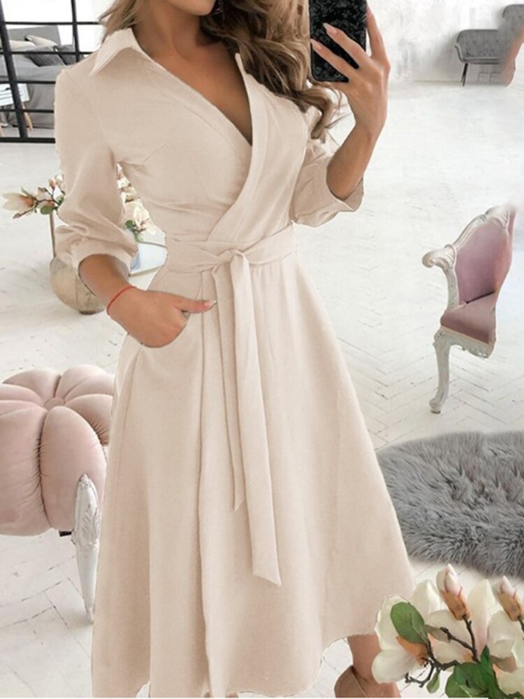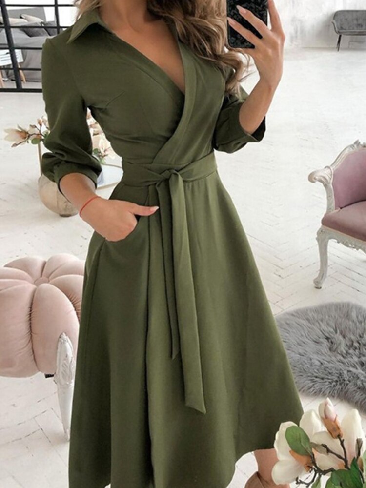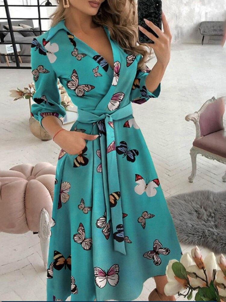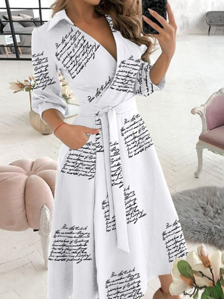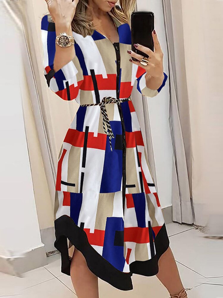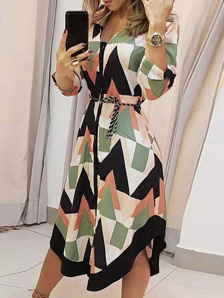 Dresses for Women 2023 Sexy Robe Mid Length Fashion Print Polo Neck Small Style Lace Up Waist Dress Long Summer Dresses Ladies