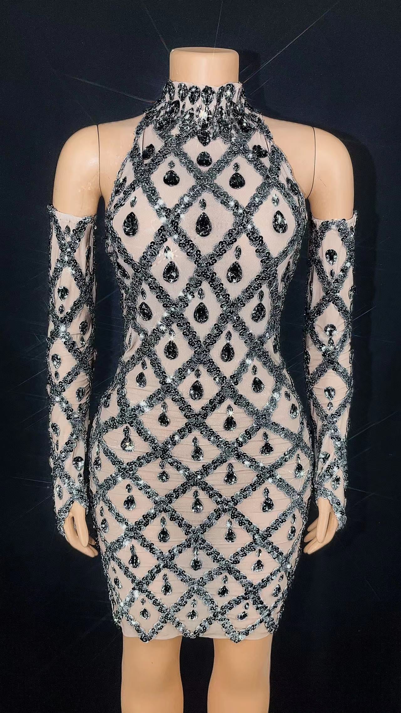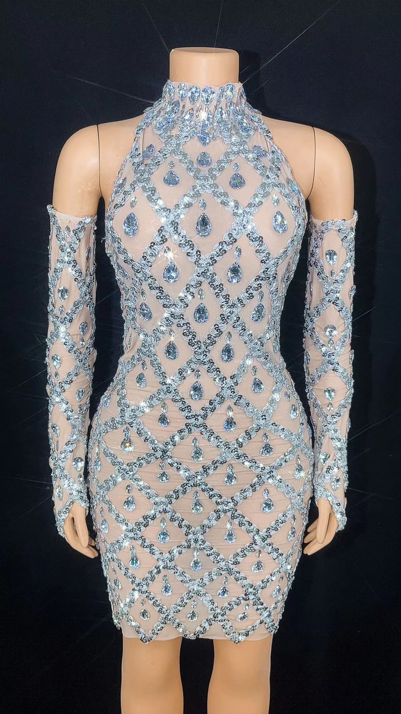 Sexy Sparkly Silver Sequins Rhinestones Mesh Dress with Glove Celebrate Evening Wedding Prom Birthday Photograph Club Host DressSPECIFICATIONSStyle: stage fashion sexy costumeSize: S M L XLOrigin: Mainland ChinaModel Number: Stage sexy costumesMaterial: SpandexMaterial: PolyesterItem Type: Xinjiang Dance CostumeGender: WOMENFit for: singer dancer,DJ bar... Regular price $112.99 USDSale price $112.99 USD Regular priceUnit price per$168.69 USDSale Sold out