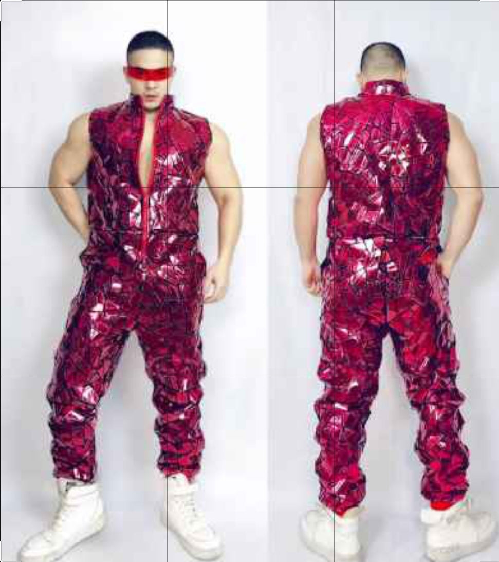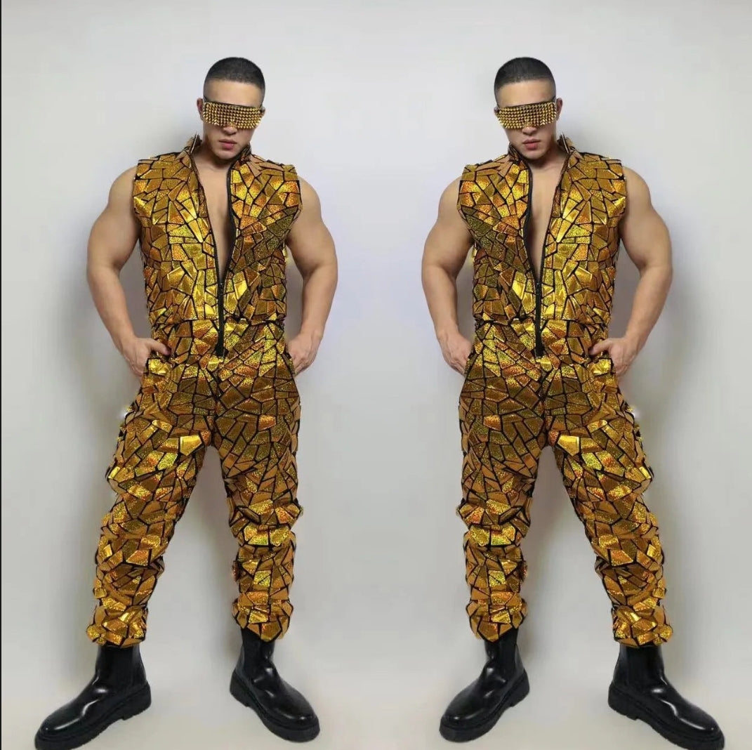 Reflective Laser Sequins Sleeveless Jumpsuit Mirror Overalls Men Singer Bar Nightclub Hip Hop Dance Costume Sexy DJ Stage Wear