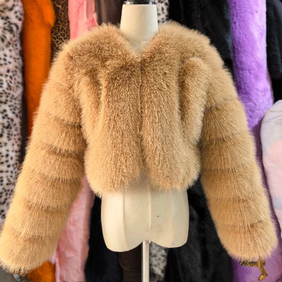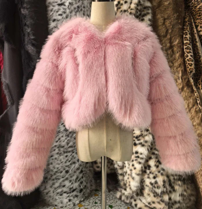Warm Faux Fur Coats Women Short Overcoats Loose O Neck Long Sleeves Covered Button Straight Work Y2k Casual 2025 Autumn Winter